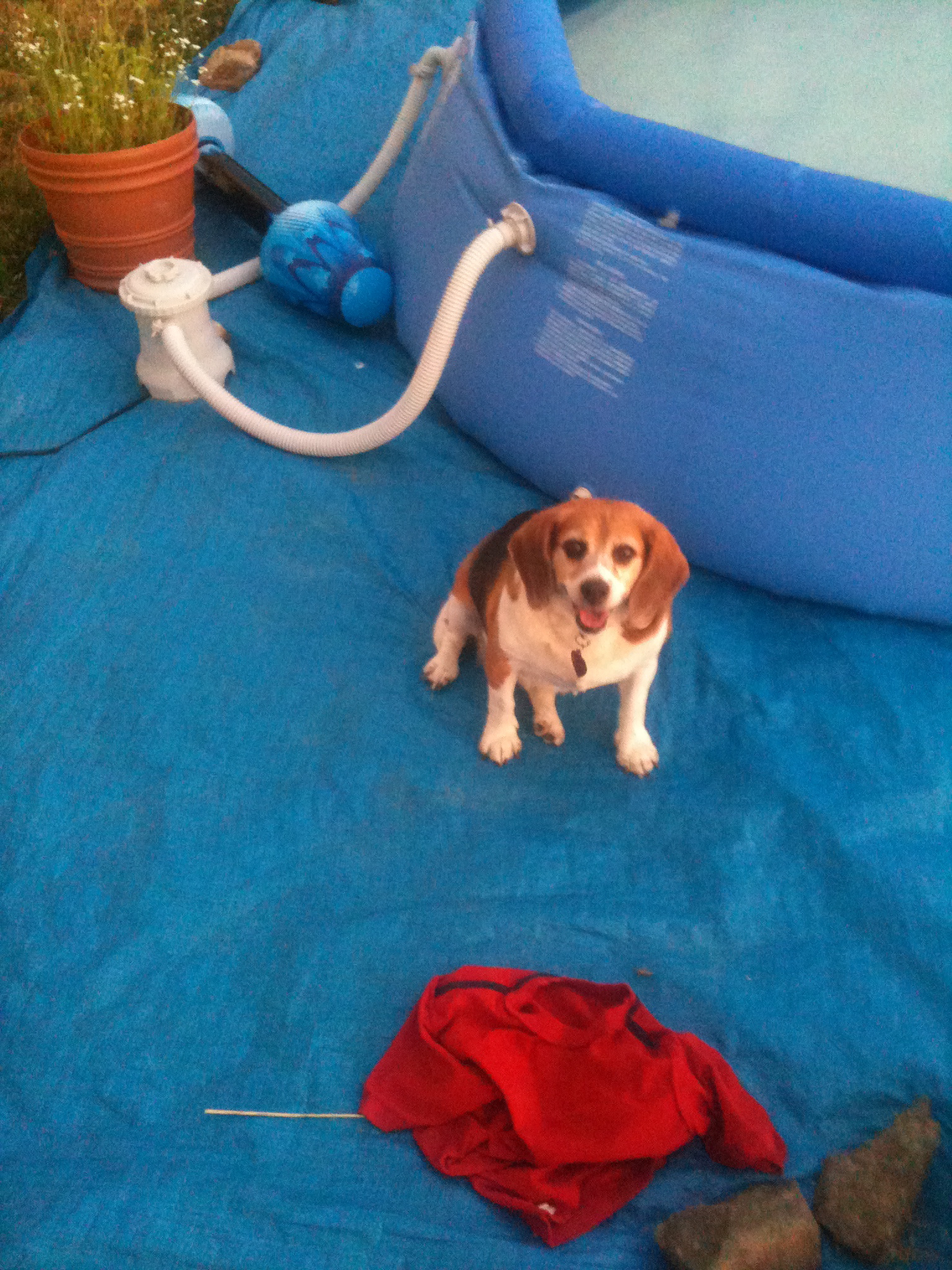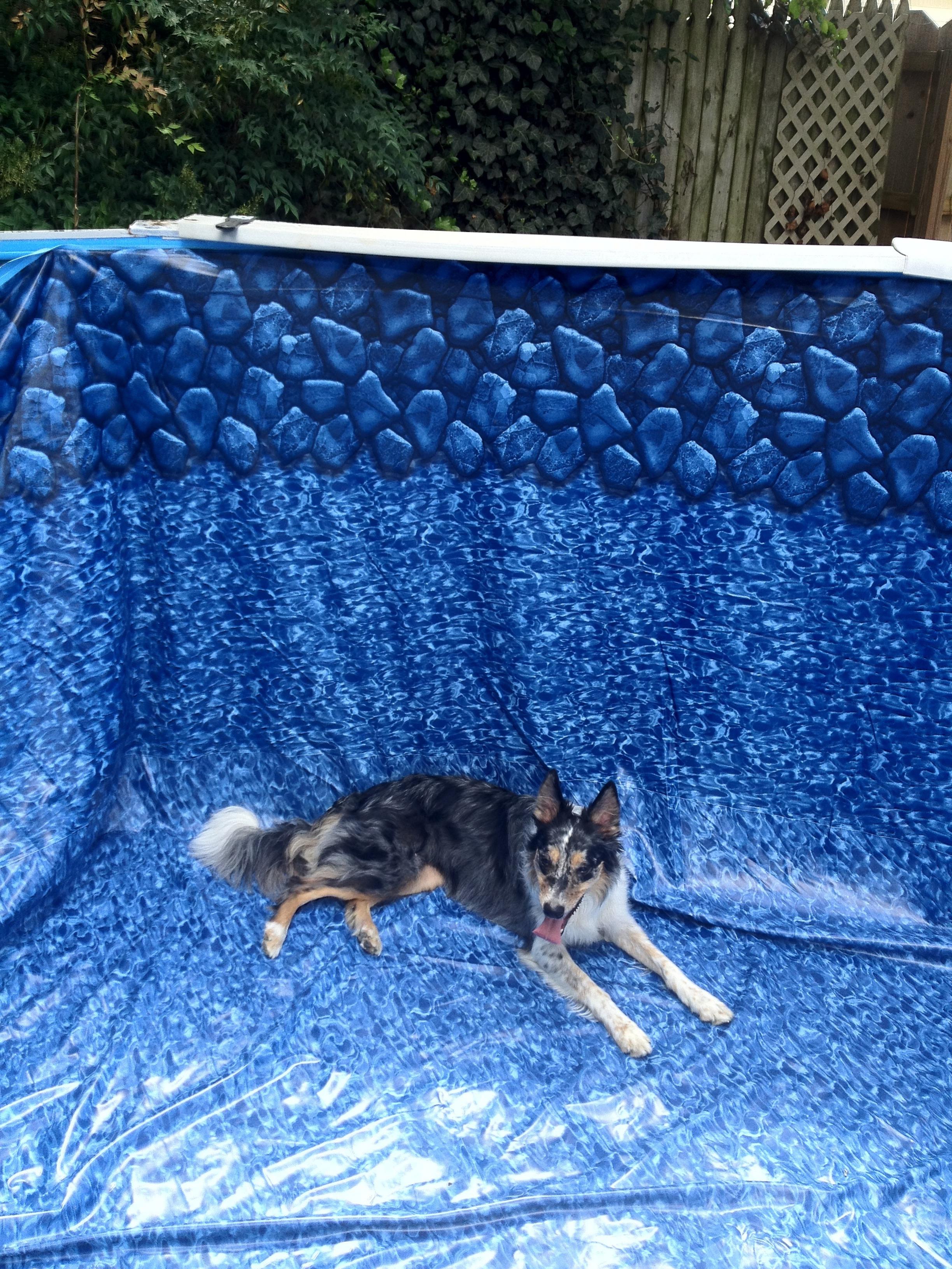 She apparently wasn't pleased with how long it was taking me to replace the liner in "her" pool, so she scooted a box over to the wall and took a peek. Then she jumped in, apparently to directly supervise.