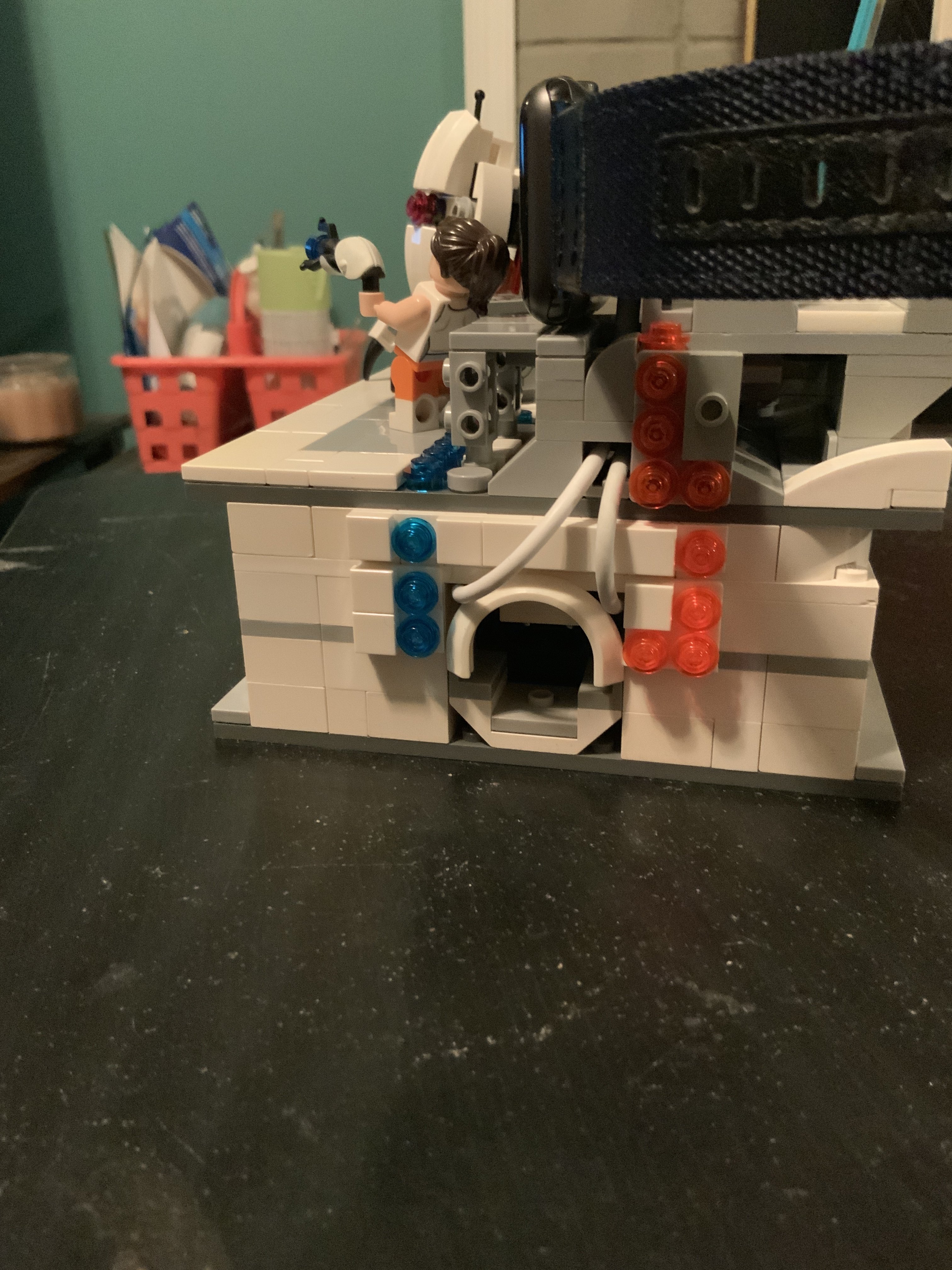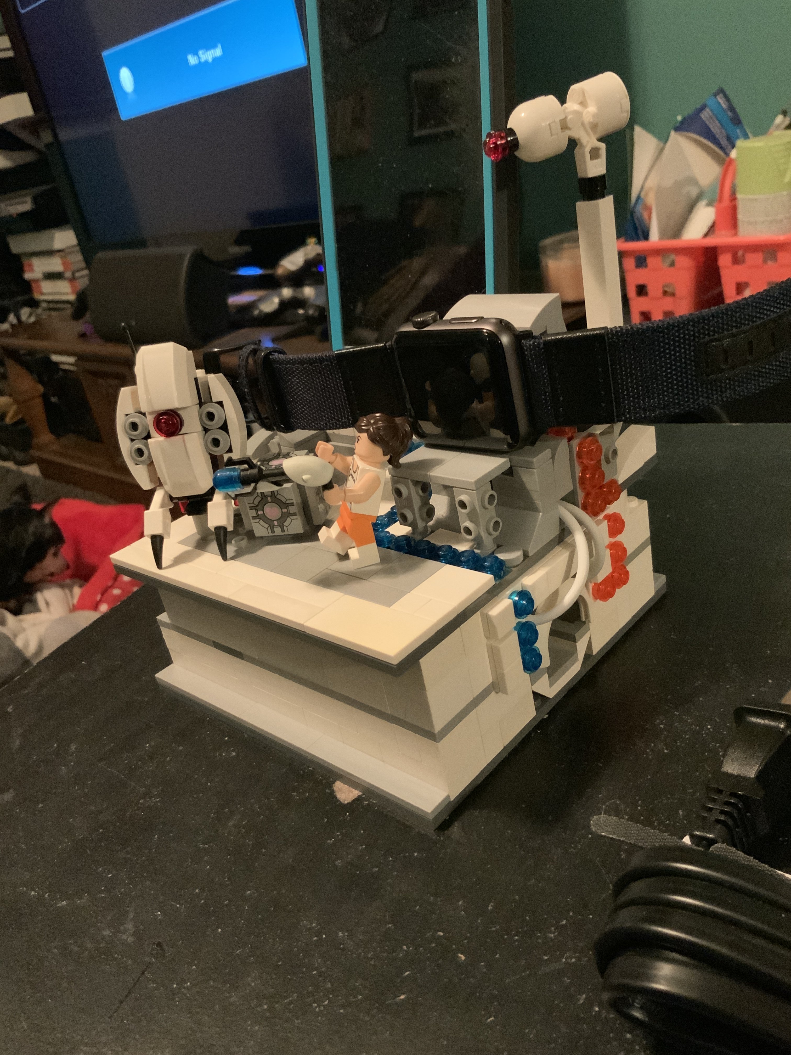 A couple of bags of random white and gray legos and some baseplates and I went to town. I made it portal themed since I already owned the mini figures.