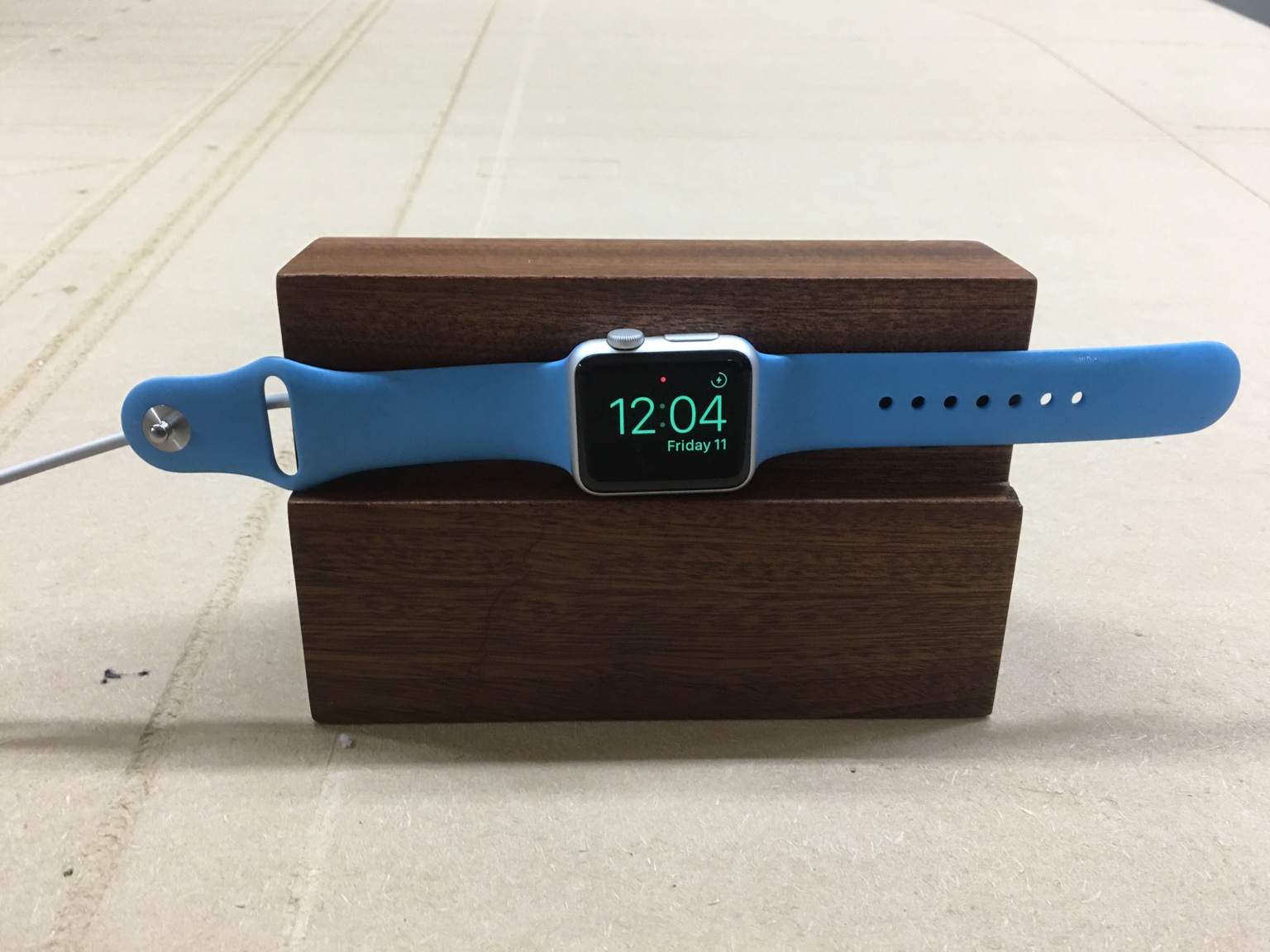 a iPad dock made from burl. very simple design only two pieces of wood. then my watch dock though with a new band it will need to one resigned.