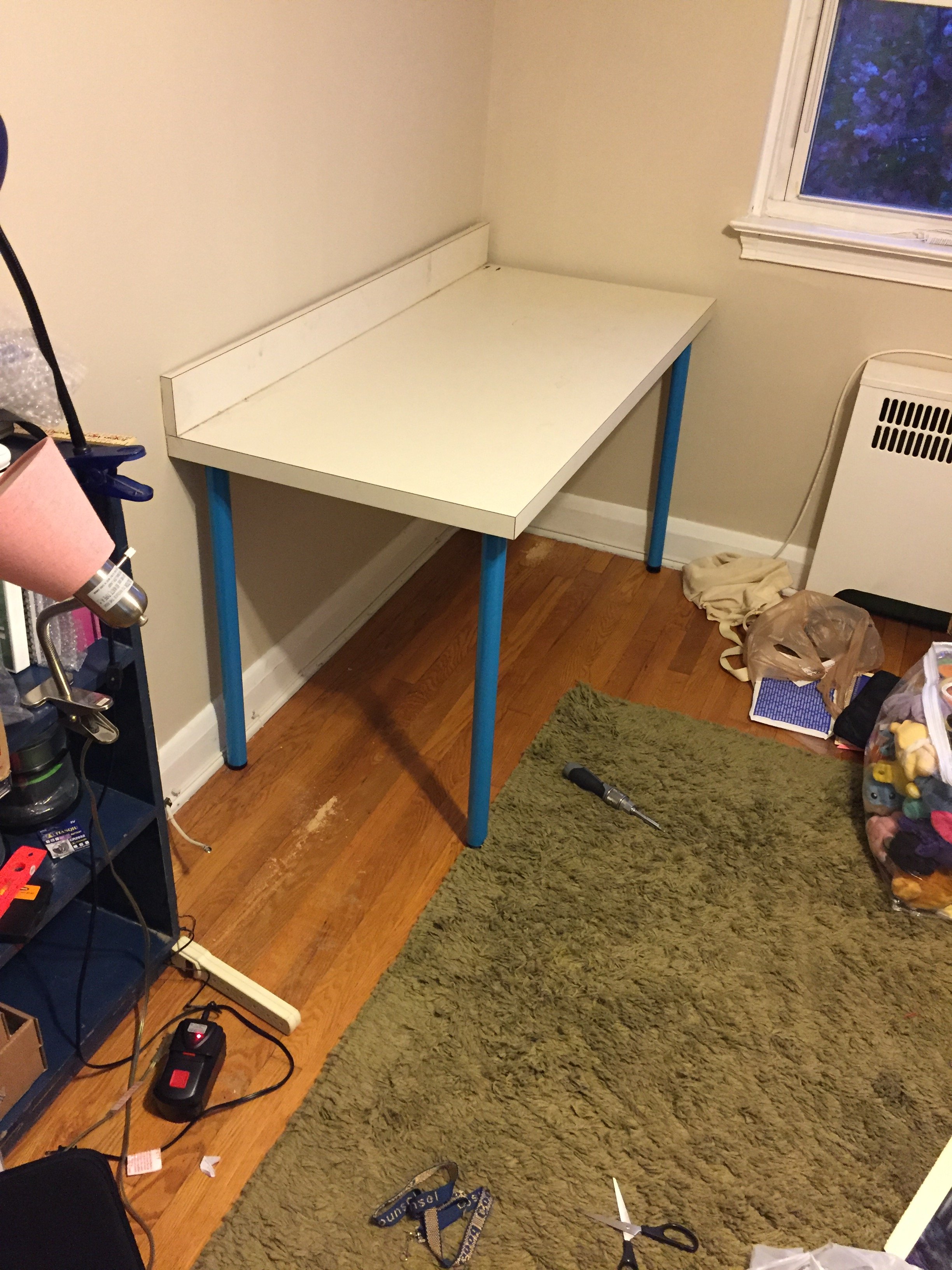 I am planning to build my own desk too but with some shelves too.Built this guy last night. Old countertop from when my parents redid their kitchen and a few IKEA legs. 20 pilot holes and some a handful of screw later...