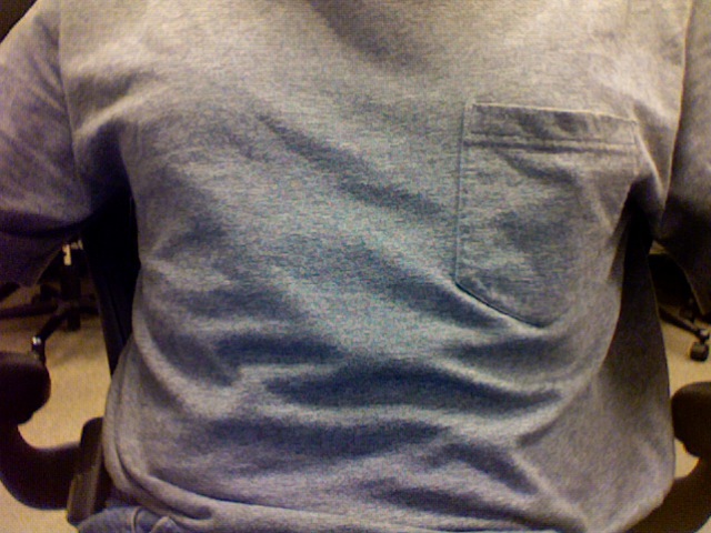 Just found this thread. This is, ummm, my grey shirt. Though astonishing for its lack of vibrancy, message, or wit, notice the conveniently-located pen/pencil accommodater in the upper right quadrant of the shirt. I'll try to do better next time.