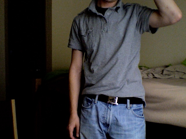 A nice polo from who knows where,with a crappy collar, and a musical T for an undershirt American Eagle pants, and a Audio belt...