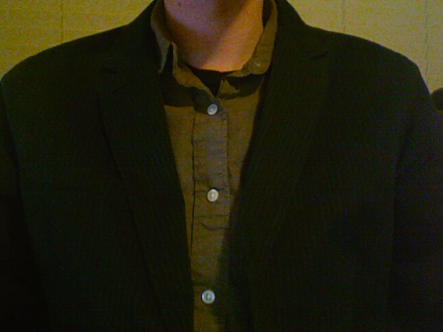 Casual shirt with a blue striped blazer over it. Quite comfortable. :)