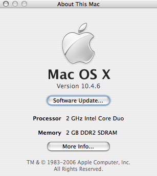 Just cuz I upgraded the ram in my g5 today. Not sure why my powerbooks "about" screen doesn't show the startup disk(might be panther) but it's name is lappy 486