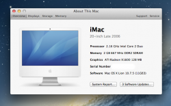 And, the revelation as to what I'm using. I know, sad. This is unfortunately a defective model. The '06 iMacs were known for defective GPUs. I found a workaround that would disable the GPU so I could use the computer without any freezing, rebooting or graphical anomalies that are associated with the GPU problems, but the downside is that I cannot watch videos, run iMovie and many animations are slow. But other than that, the machine actually operates decently fast.