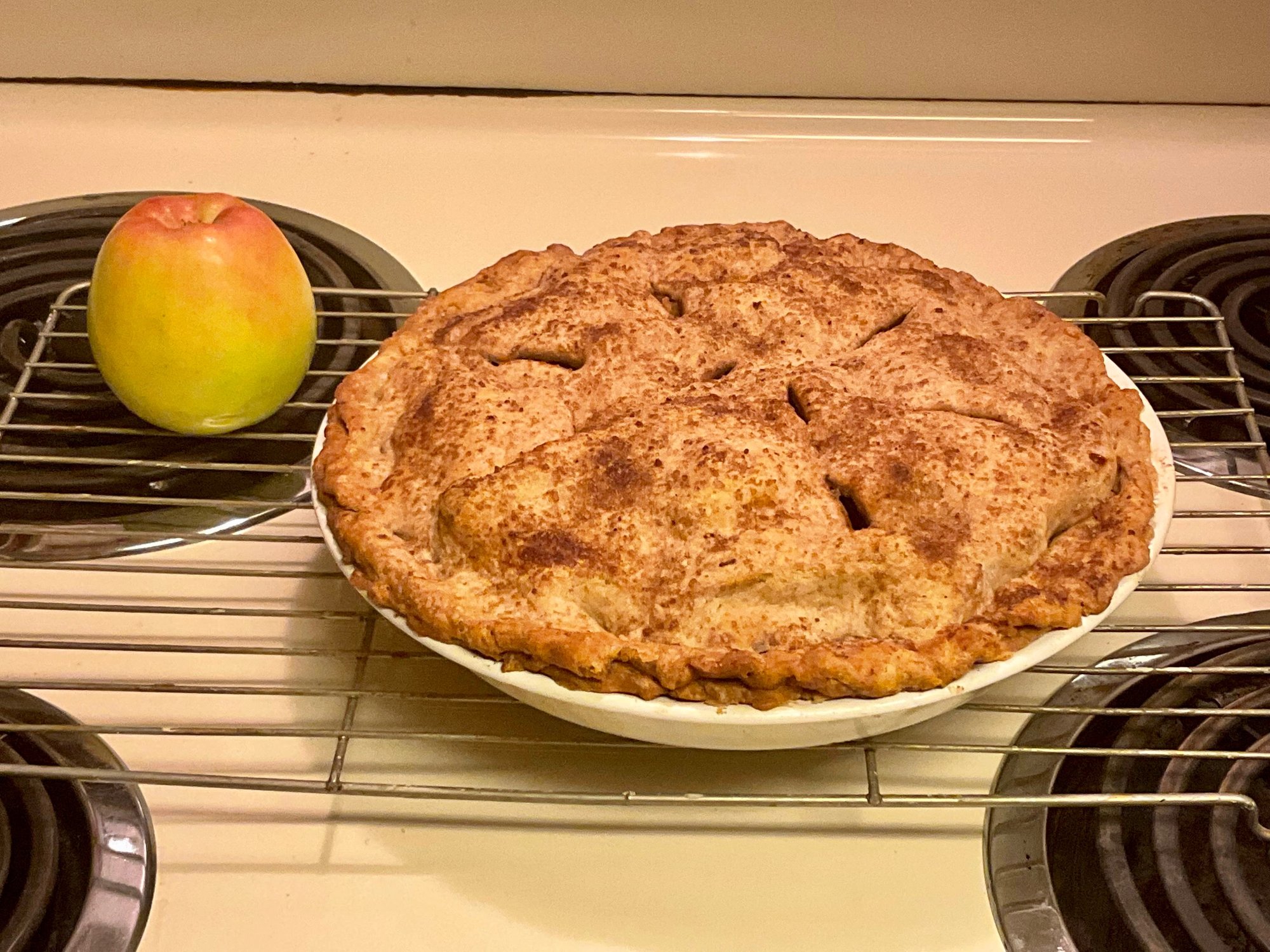 .. baking last Sunday morning -- apple pie -- made with BC Okanagan apples, fresh from a farm in Osoyoos, and half & half 100% brown whole wheat and all purpose flours for the pastry.