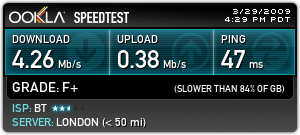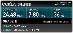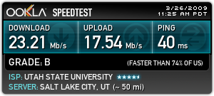 may I be the first to say that you fail because that is not your internet connection speed, that is your intranet speed... test your connection somewhere other than the server that is at your school
