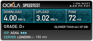 Well, this is disappointing. I'm currently subscribed to an SBC DSL Elite line, getting between 6-8mb/down and about 700K/up.