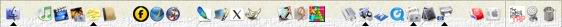 Finder, Safari, Mail, AdiumX, Ecto, DEVONthink Pro, Shiira (trying it out), Address Book, Mellel, Bookends, Accordance, MS Office Project Gallery, Keynote, iTunes, iPhoto, iCal, Sys Prefs | Excel Sheet for tracking my diet (gotta drop some pounds! dropped 45 so far...hoping to drop 20-30 more), Downloads Folder, Classes/Research folder, shortcut to the wife's iMac, Trash