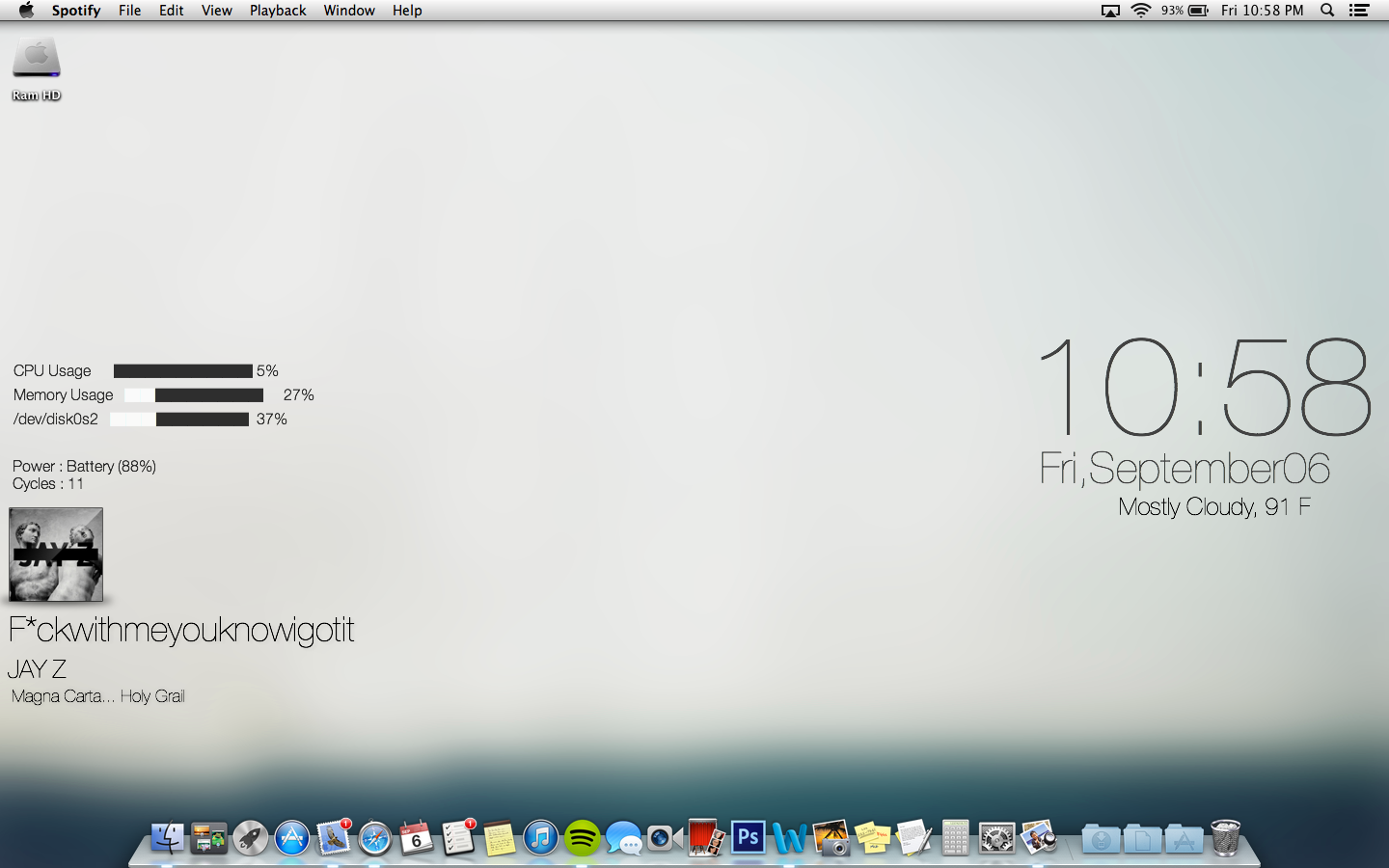 Hey man, I'm relatively new to OS X, so I haven't figured how - but can you kindly tell me how I can I can make my desktop like yours with itunes and clock and all that?