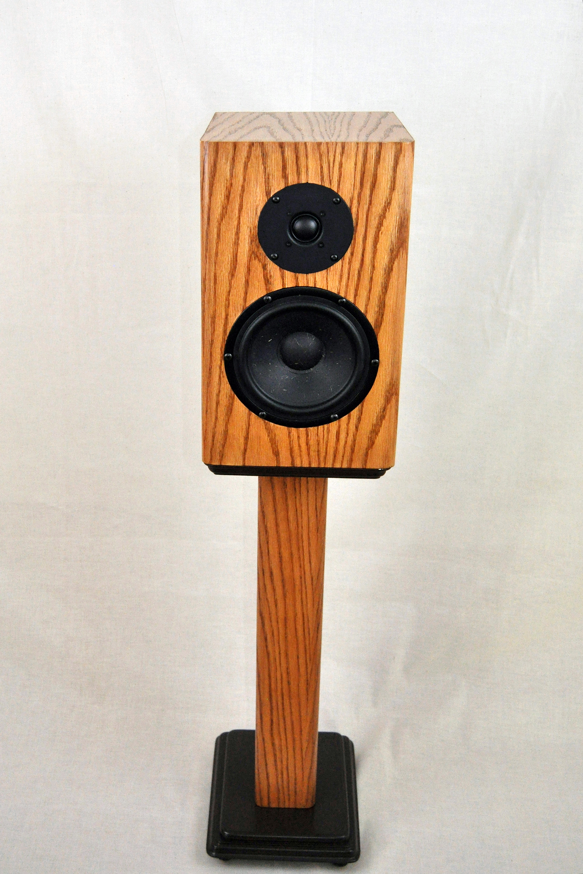 Seas 7" reed/paper cone woofer and Seas 1" tweeter. While kit commercially sold as SR71, I worked from schematic plans and used higher level crossover components than the commercial kit. Enclosure and matching stand was a woodworking project. Magnets embedded under the veneer for clean look when grill off.