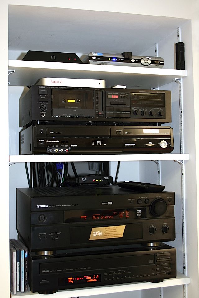 I started a little "remodeling" project. I can't do to much because I am just renting this townhouse. There is a storage space under the stairs, which placed a small door next to my TV. It has always bothered me so I built a shelving unit and took the door off. So now that unit slides into the opening and looks like part of the wall.