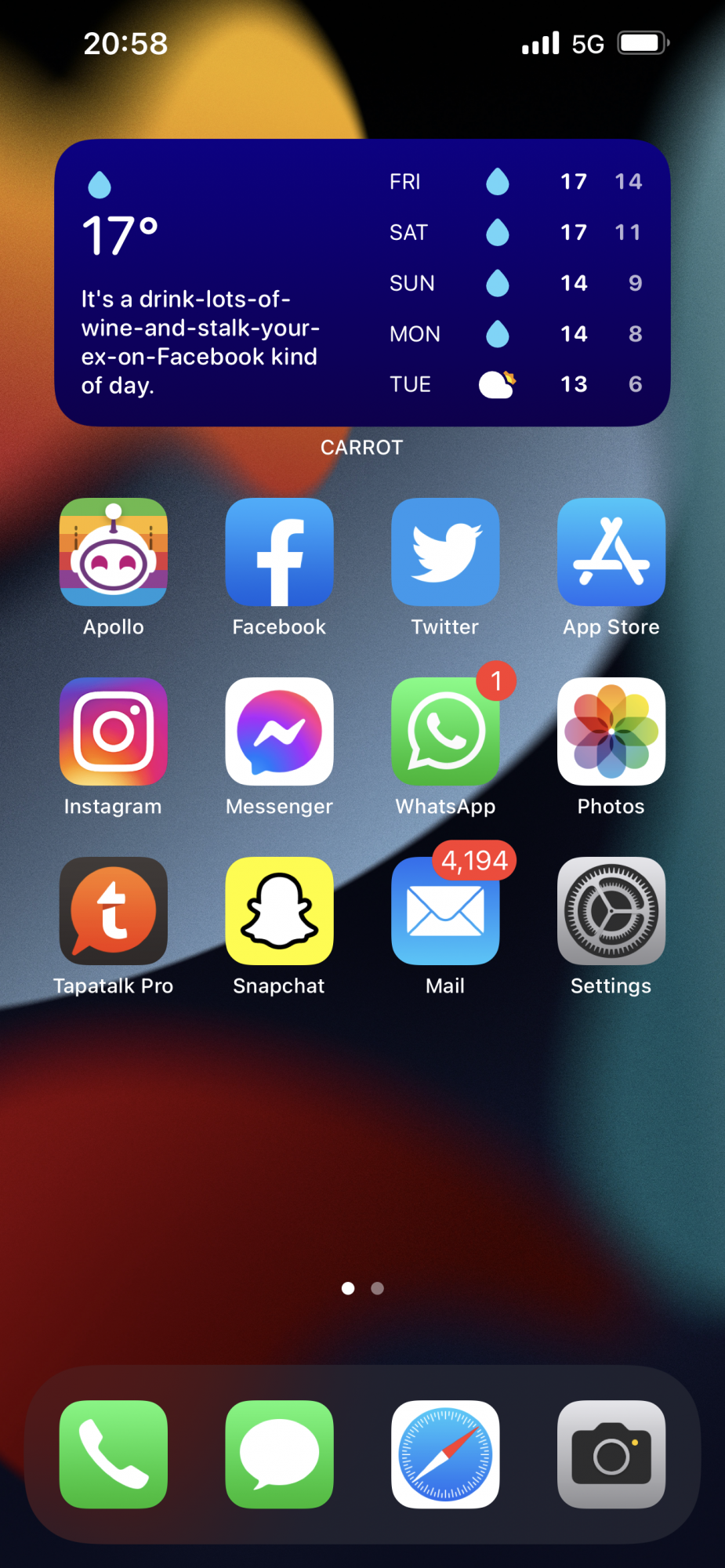 Page 3 - misc apps, sometimes I hide it, sometimes I don’t.