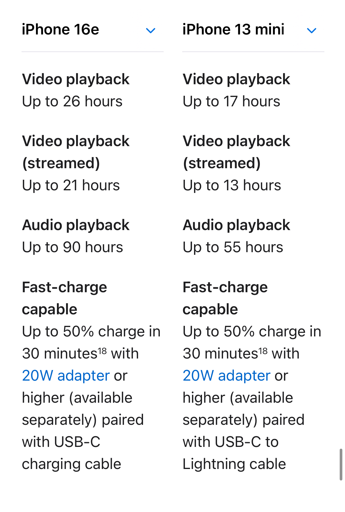 I have the 13 Mini and I love it, particularly the size. But small phones are dead now and I’m wondering about upgrading to the 16e, mainly for the battery life as the Mini is not great for this. I’m generally a light phone user and mainly use it for messaging, Apple Music, light browsing on Safari and day-to-day photography. I’m absolutely not a photographer, so the Pro lineup is no use to me. Not too bothered about Dynamic Island - my wife has the 15 and apart from the camera it just doesn’t appeal to me.