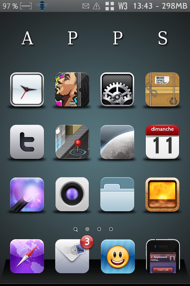Credits to Muscar for dock, surlygrl1969 for wall, Schnedi for carrier and supervixen for widget. Icon contributors for these great icons-thank u.