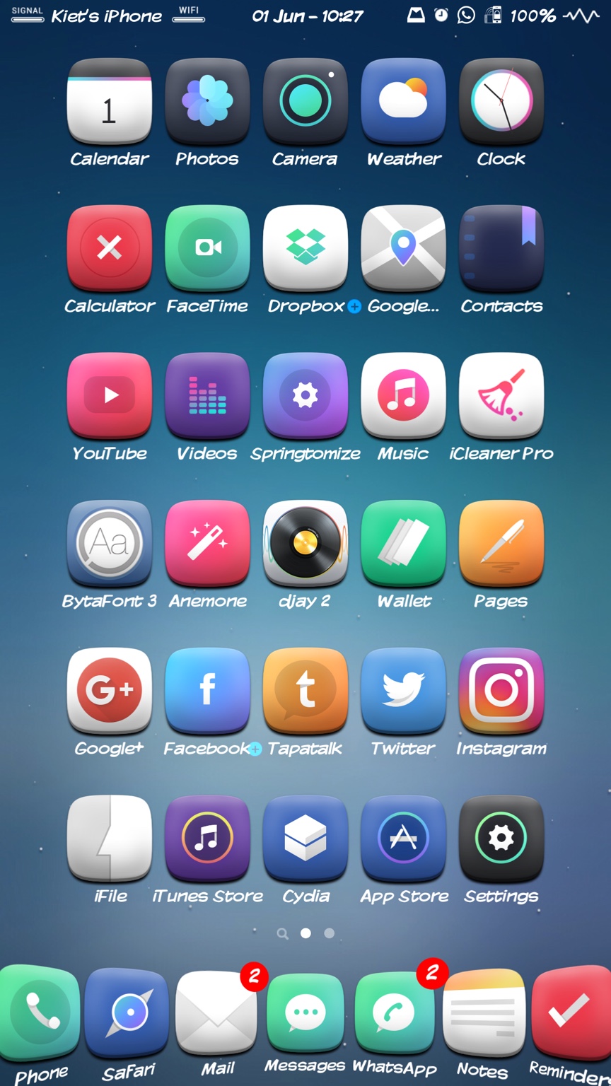 I seriously lucked out. Bought a iPhone 5S from eBay (for use as a iPod touch) a few weeks ago and it amazingly shipped with iOS 9.1, so I immediately jailbroke it. This setup isn't anything too fancy or over the top, just the 30AA icon theme, Roboto Condensed font, and a few other "essential" tweaks. Wallpaper from the WLPPR application.