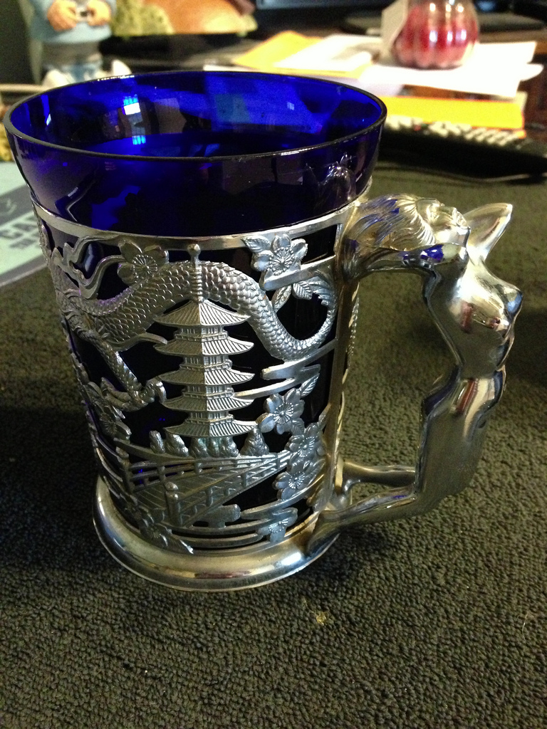 Looks like something out of that Games of Throne show.Went to an antique store, although it doesn't technically qualify as "antique" but now and then I stumble upon something interesting. Saw this unique chalice, and thought it would be mine to drink my coffee out of.
