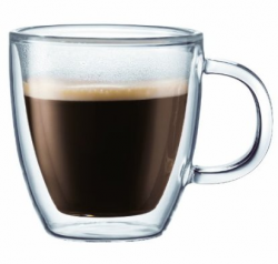 Nice glassware. I have the Bodum 4.7 oz Bistro Double Wall borosilcate cup...if you properly pre-heat the cup before do your extraction, it will really keep your espresso hot throughout the drink.