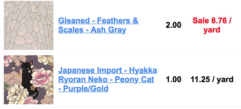 Some designer cotton fabrics for quiltmaking.. .well at least one of them was on sale.