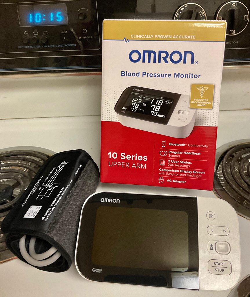 Must be the deluxe model. It also monitors the chicken in the oven.. nothing exciting, just a new home unit replacement ... will be used primarily for family doctor requests. Great (fitting) cuff with this unit, and readout on the monitor. And it comes w/AC adapter.