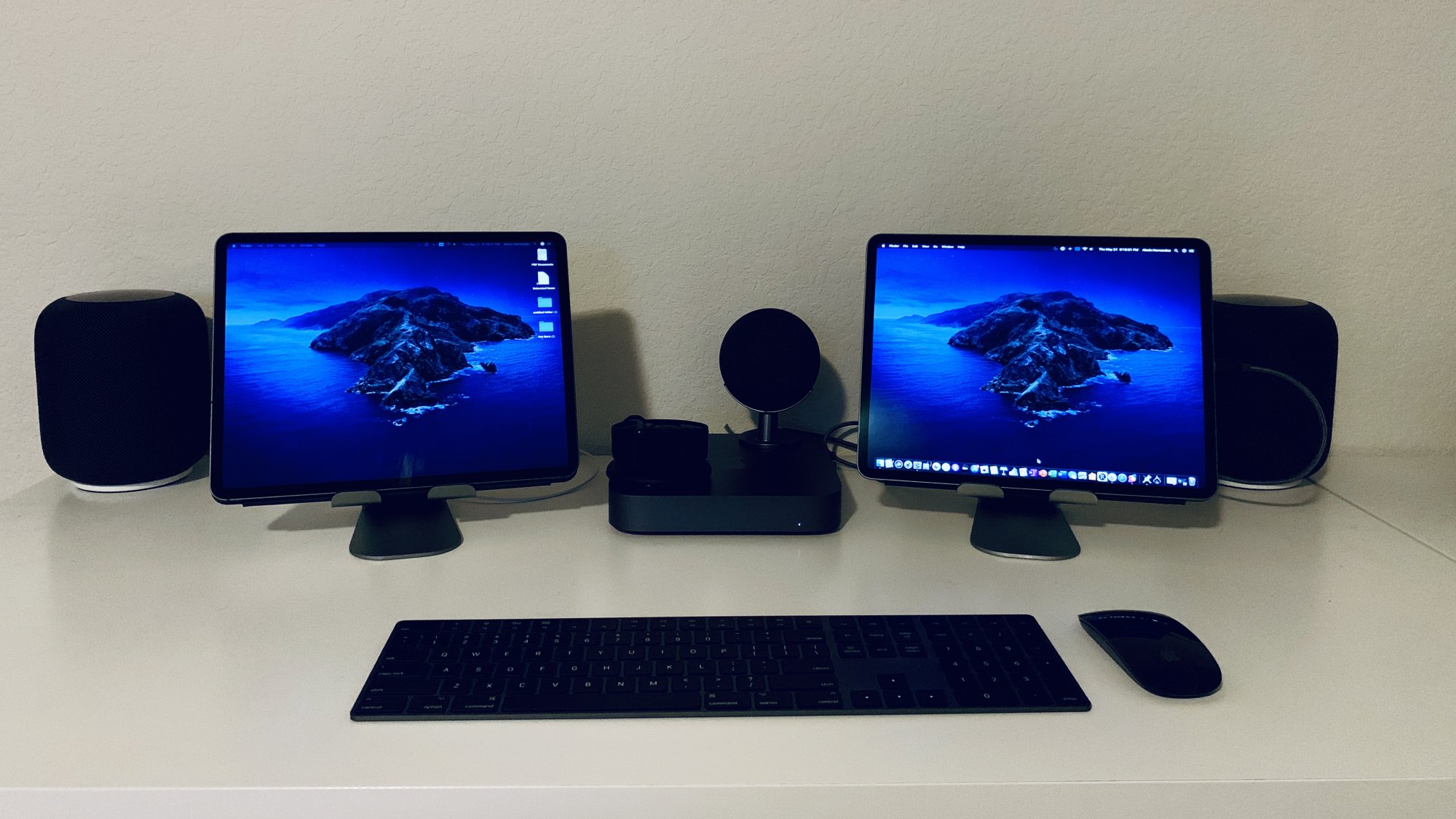 love the dual HomePod setup behind each iPad as well. Very resourceful setup ... curious how Siri acts with both HomePod’s?