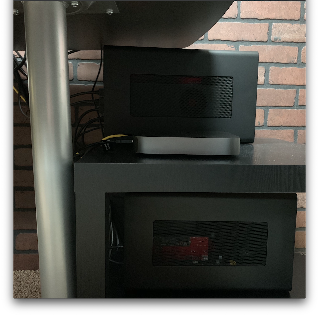 Here's my main home desk with some of my computers. In the middle you can see my new Mac mini Kenobi with its invisible Glory Blow Hole (see Mac mini i7 temps thread)....