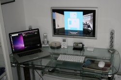 Amazing how similar our setups are! Your's is more clean and well put together though :p . Mac pro 3,1 is sitting on the floor to the right and 15" Al Mbp is in my bag someplace.