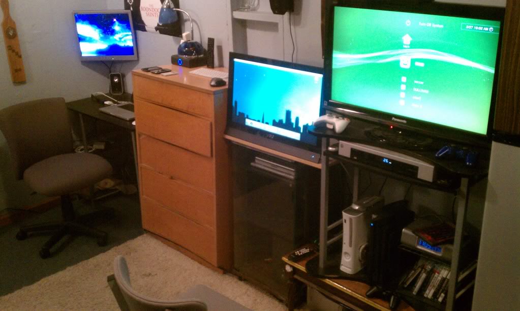 Waiting on a delivery of some braided wire sleeving to hide the ton of wires going to the amp better. Pretty neatly hidden the equipment around the room.