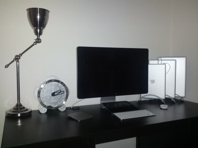 A Ps3 and 360 are tucked right behind the monitor, which I'm saving up to upgrade once Apple releases a cinema display that takes advantage of my new retina macbook.
