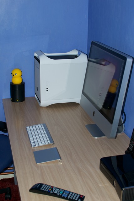 I also have a laptop which I use when away in London but that is not usually on my setup. I also have a Time Machine backup behind my 27 inch iMac as well as an apple dock for my iPhone 3G.