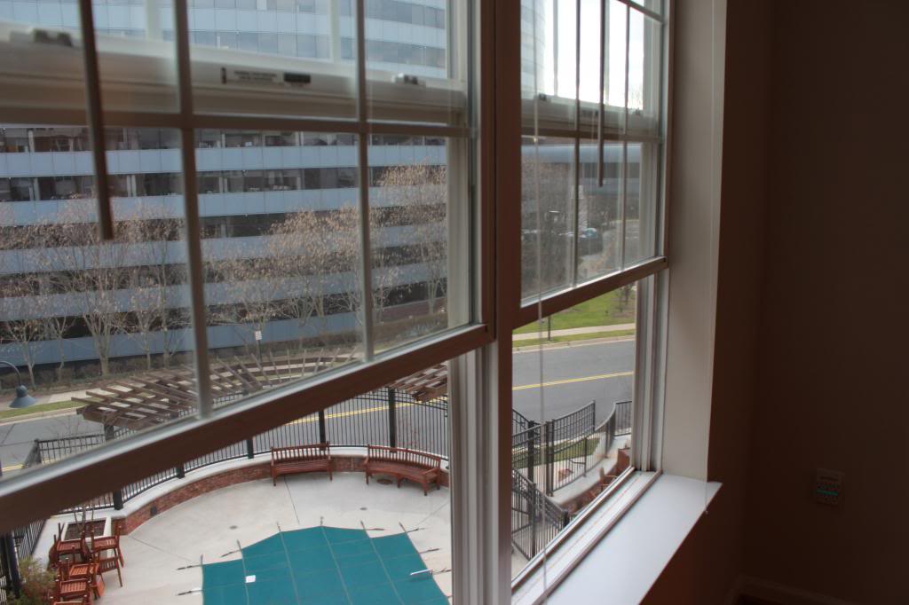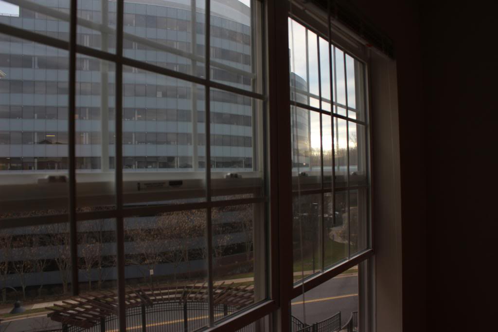 the desk has a nifty little compartment underneath it where all chargers, modems, time capsule etc resides out of sight.