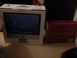 Heres my new 20" 2.0 ghz imac (which im not allowed to open till christmas ) and my brothers new compaq laptop booo![]()