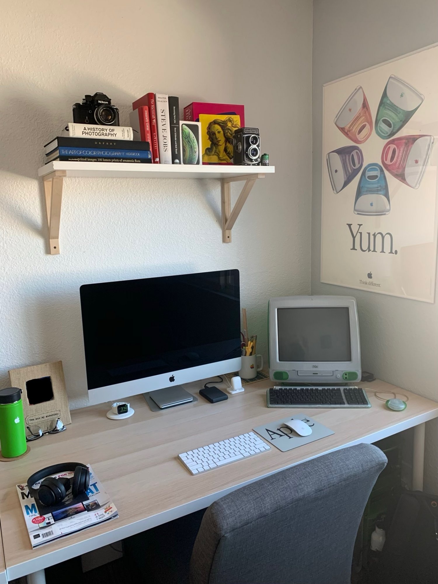 My utilitarian setup. It does me well. Mid-2012 MacBook Pro 13 (with a spare), Asus PB258Q Monitor, various hard drives, a drive dock set up as a raid, etc.View attachment 910683