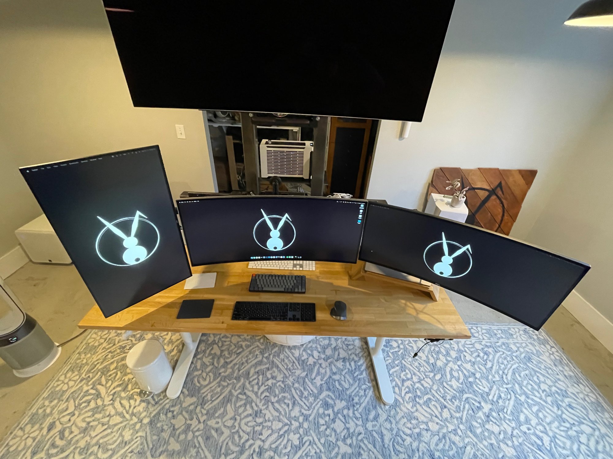 100% - I had these screens from my last place which had a very different setup. I will eventually replace the screens (other than the vertical U3219Q which I think is a lovely monitor). The ultrawide on the side is non-optimal for sure, and the LG in the middle I just don't like (weird USB issues, colours are poor, and it has a variety of idiosyncrasies I'm not crazy about). The actual frame was only like $600 CND to get done and the place was already getting its 70 year old electrical system replaced so it was just kind of a chance at overkill I had to take.