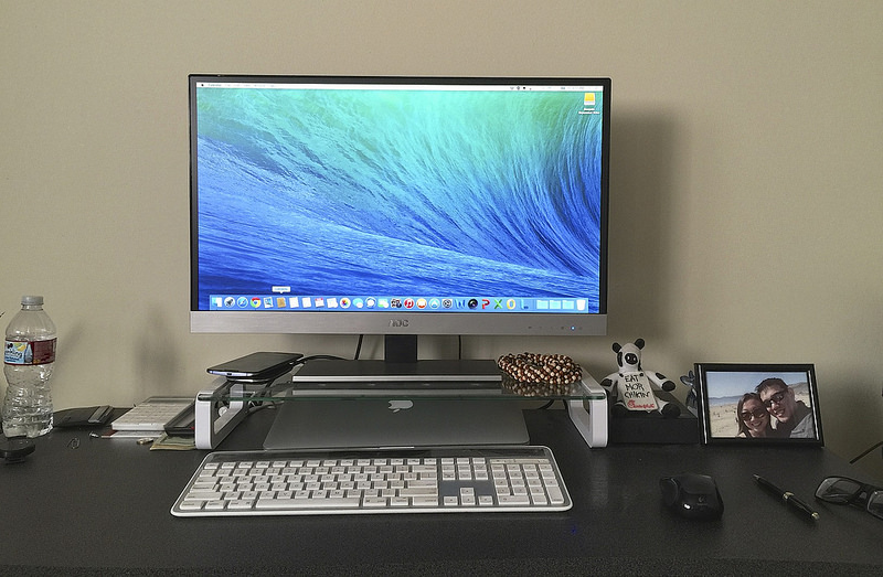 Workspace 3-6-2015Sold my iMac 27-inch and trying out the AOC IPS 27-inch screen. Looks fantastic but the built in speakers suck. Also sort of a downgrade going from 2560x1440 to 1920x1080!
