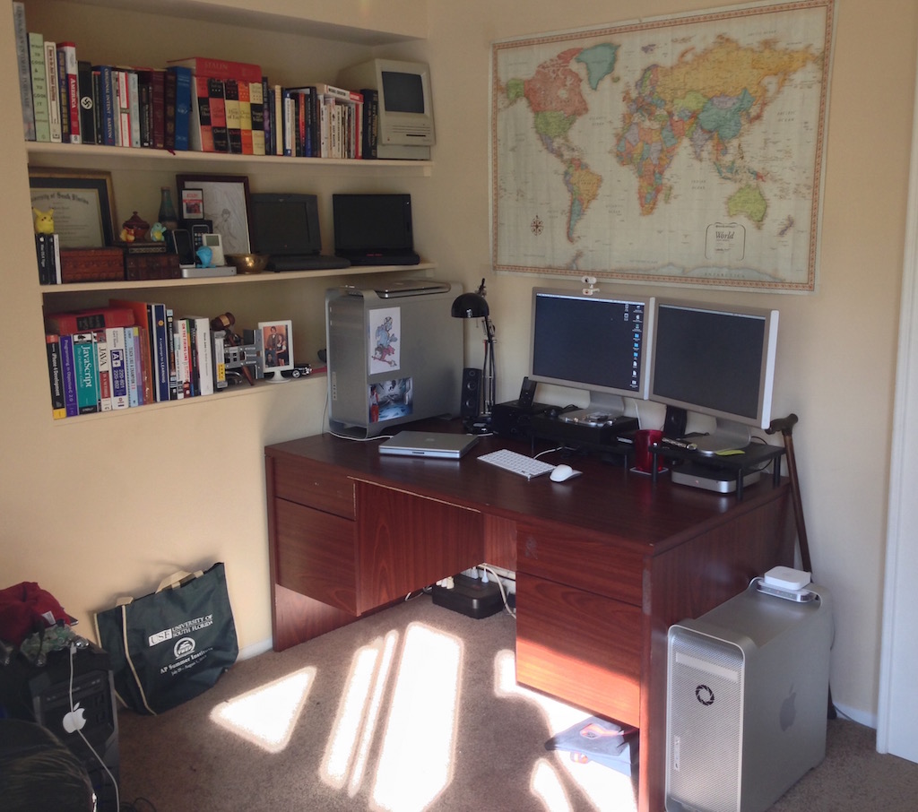There are a couple of shelves that hold my iBooks and PowerBook G4s underneath. But yeah, that's my Mac setup.