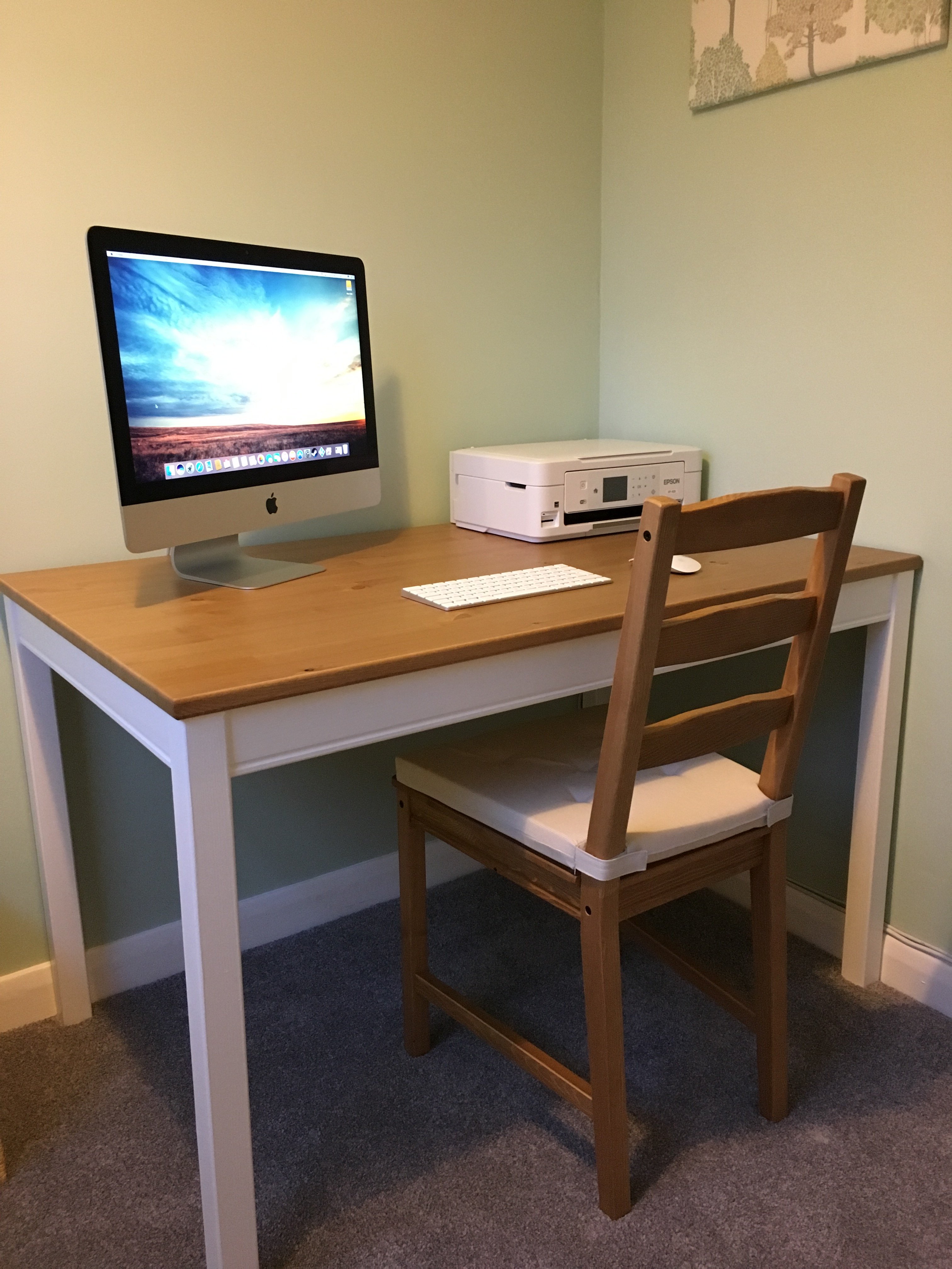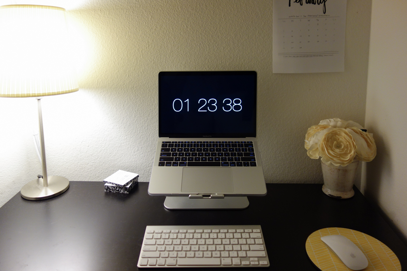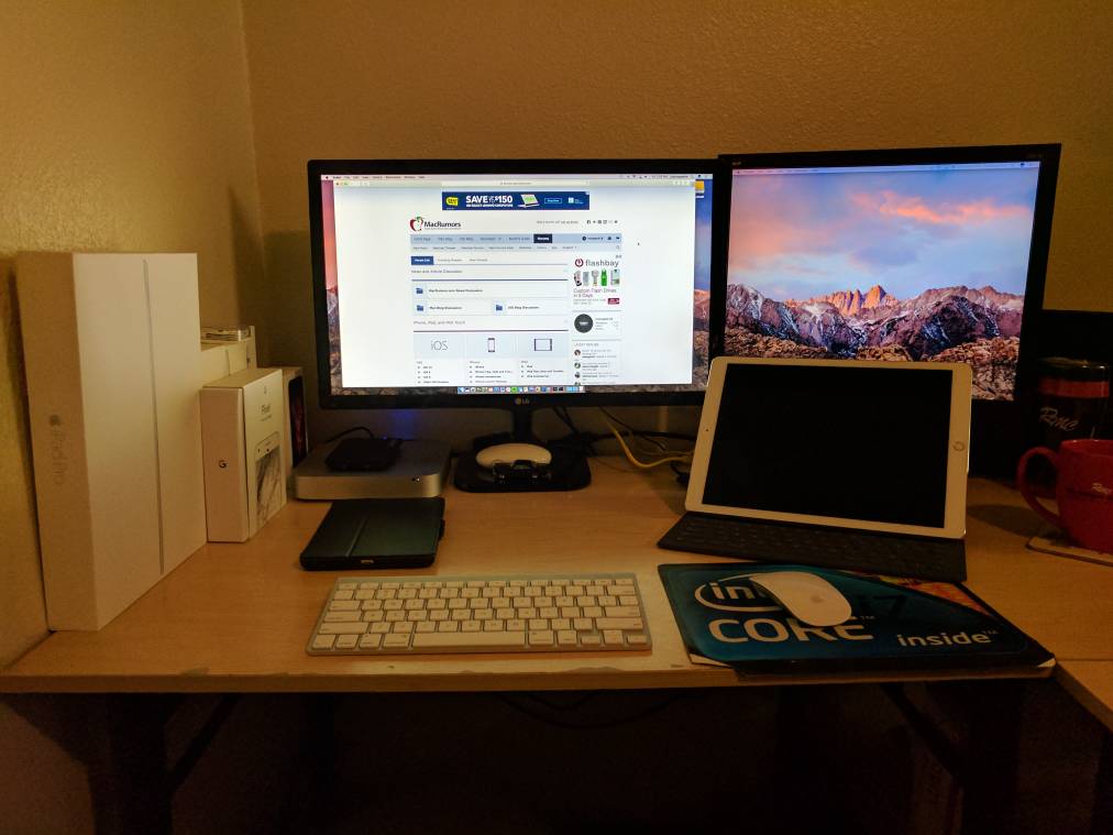 Heres an update with my setup. I ditched the LEDs under the desk because they all dimmed/died. Instead I went the classic route with a desk lamp. In the future I'd like to get one of those remote color changing bulbs (can anyone suggest a good brand/model?).