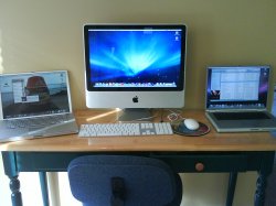 I'm also still using my vista based laptop. I can have both the Mac and the LT linked up to a secondary screen for dual monitor use. I'm using a small Belkin device that allows me to share the keyboard and mouse as well as the screen with both computers.