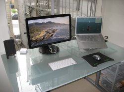 MacBook Pro 2.2GHz and the G3. Didn't want to spring for the wireless stuff. Plus, I prefer the wired keyboard over the tiny wireless one.