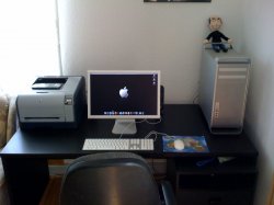 Just a before and after pic. I just got the wireless keyboard today. I'm THINKING about getting the mStand...not quite sure if I wanna pull the trigger just yet. Also sold off the Mighty Mouse and replaced it with my older Revolution.