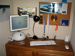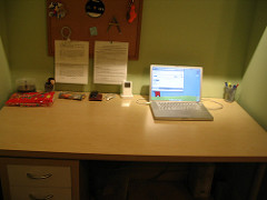 Much better desk. I like the colors of the wall but does it still look good after a while, like do you get sick of it? I want some of that candy! And why did you name your PowerBook Kelly?