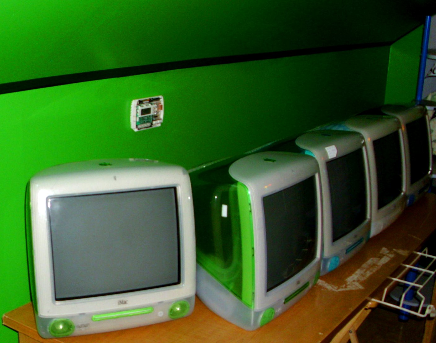 The Green iMac G3 (Turned sideways In pic) i found along the road the Plastic inside that holds the CRT is broken and the Hard Drive is messed up but it still powers up when i tryed it last in October. Almost all the iMac G3's in the pic have new Flyback Transformer's. The only 2 that do not is the indigo and the green one i found. But the indigo works just fine it looks like it had a easy life