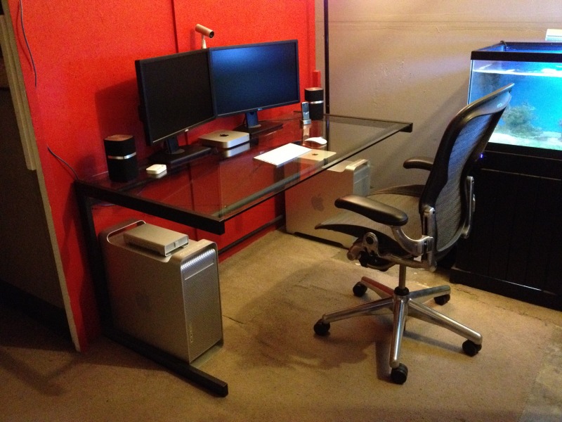 First three pics are of my main dual-screen Mac Pro (2010) setup;