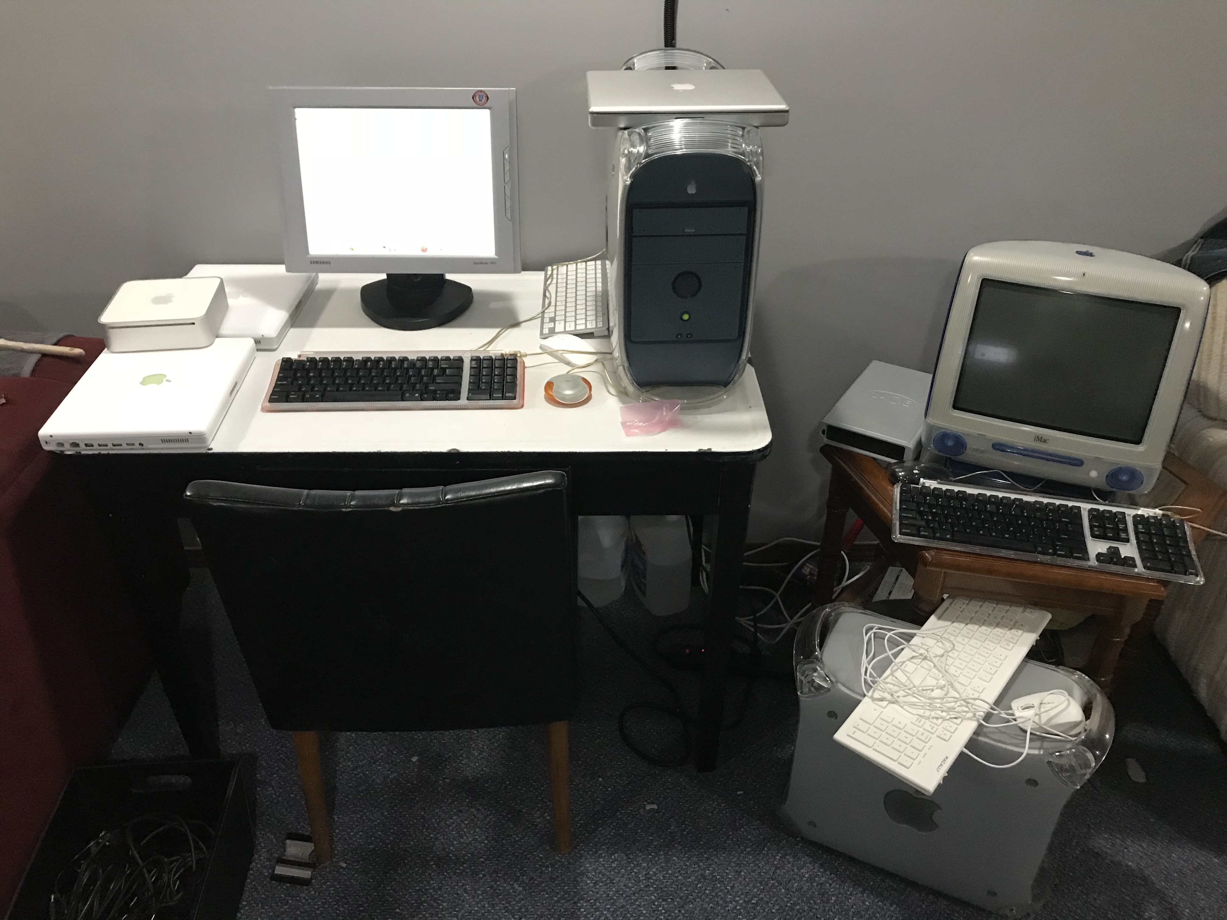 Baby G4 Cube [450Mhz, 1.5GB RAM, 15" Apple Studio Display] used for writing down ideas, poems and listening to music at night (when the large setup in the backgroud was too loud) used through 2012-2013