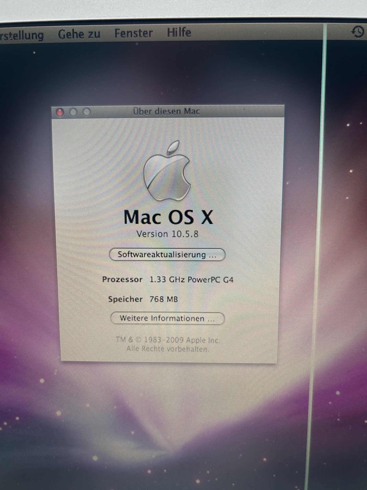 Apple PowerBook G4 2004 12 inch, 1.33 GHZ, 768 MB RAM (still... the already ordered 1 GB RAM chip was defective), still a normal and original HD is installed (SSD is already ready)