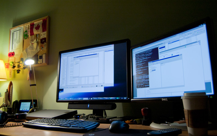 lol but that would be too easy! Besides, who wants to look at that age old XP wallpaper? :p The blurred out computer screen is just a spreadsheet with all of the employees that are on duty, hence being blurred.