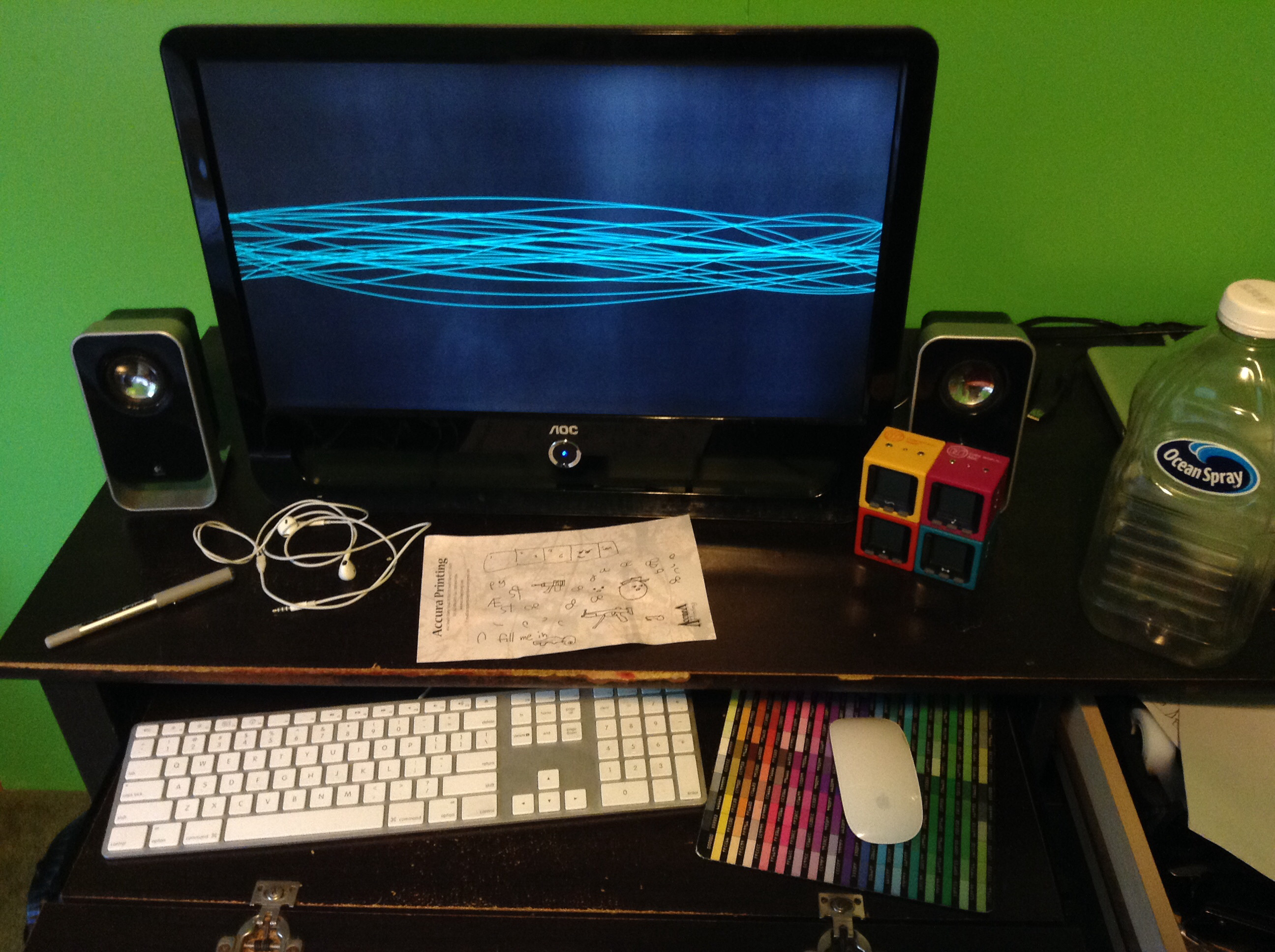 Alright, here it is; one of the least photogenic setups photographed by one of the least photographically talented people. Photograph. Also, take note of the many graphemes on the scratch paper: