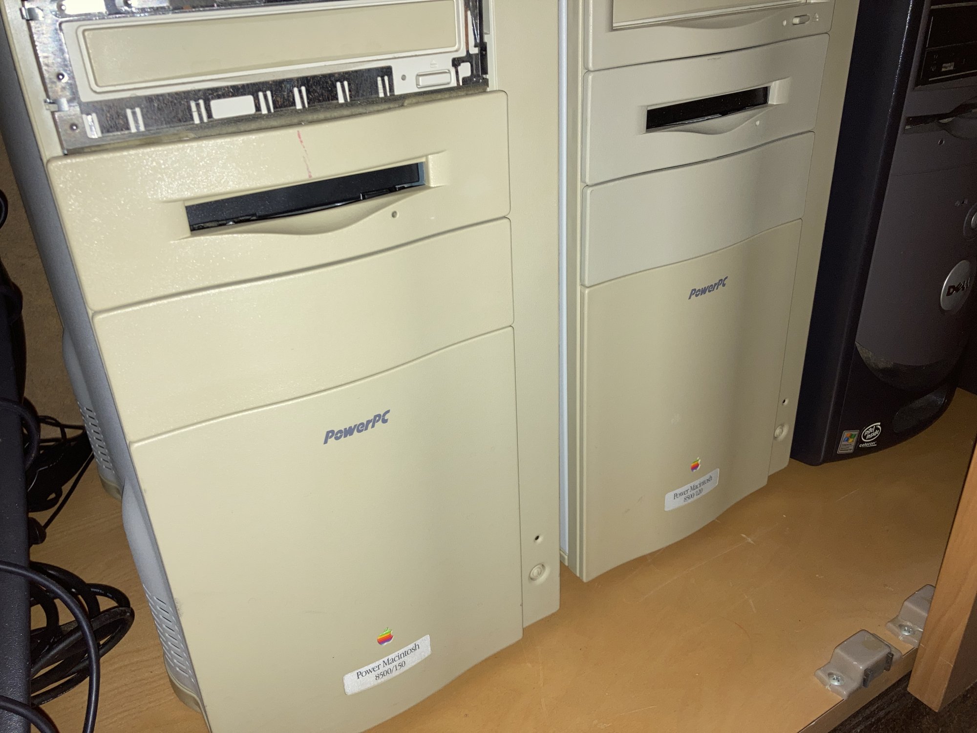 PowerMac G3/450 with 1GB ram and 2TB external RAID (via eSATA/PCI SATA card) & PowerMac G4/500 with PCI SATA card, 250GB boot drive and 2x 3TB SATA drives.