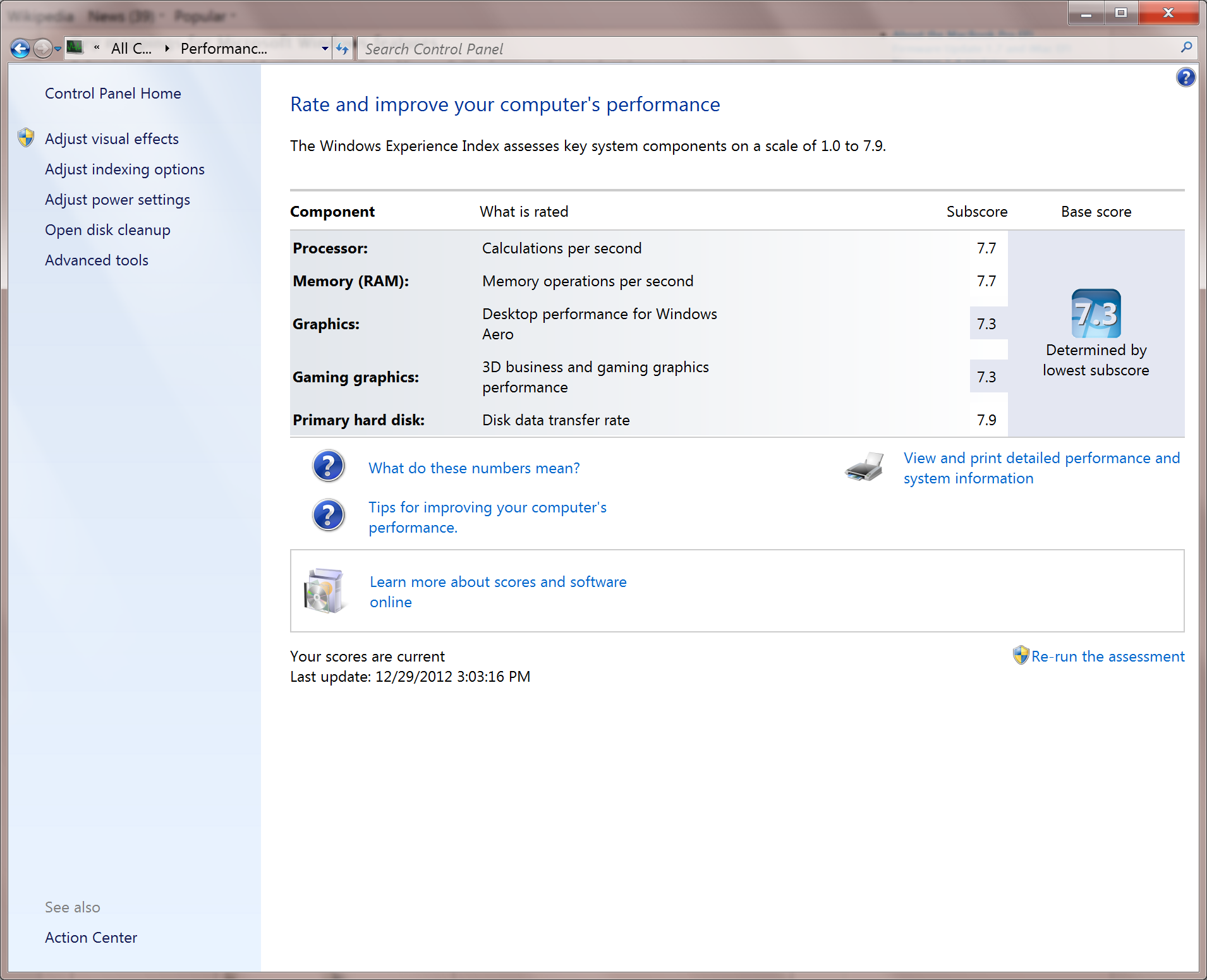 Nice number for that machine ( 5.3 )! My new 2011 mba 13 i5 256 gb ssd is just a tad higher sitting at 5.6 ...