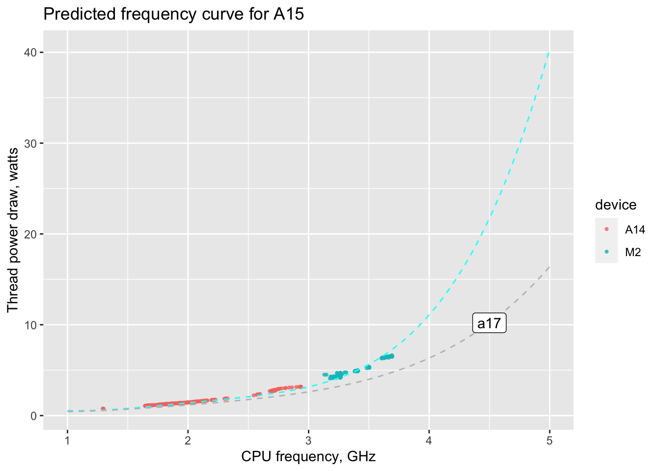 P.S. Looking at this graph I can't wonder whether there is some intent behind some crucial points. It it a coincidence that A17 Pro is clocked to peak exactly at 5Ghz, or that the curve hits 4.5 Ghx